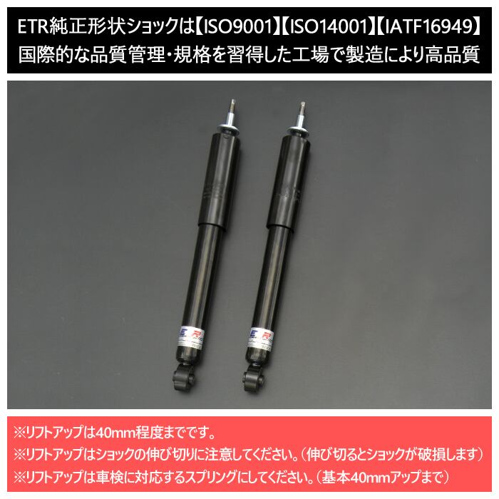 ・ETR純正形状ショックは【ISO9001】【ISO14001】【IATF16949】国際的な品質管理・規格を習得した工場にて製造しており高品質です。