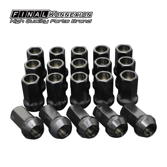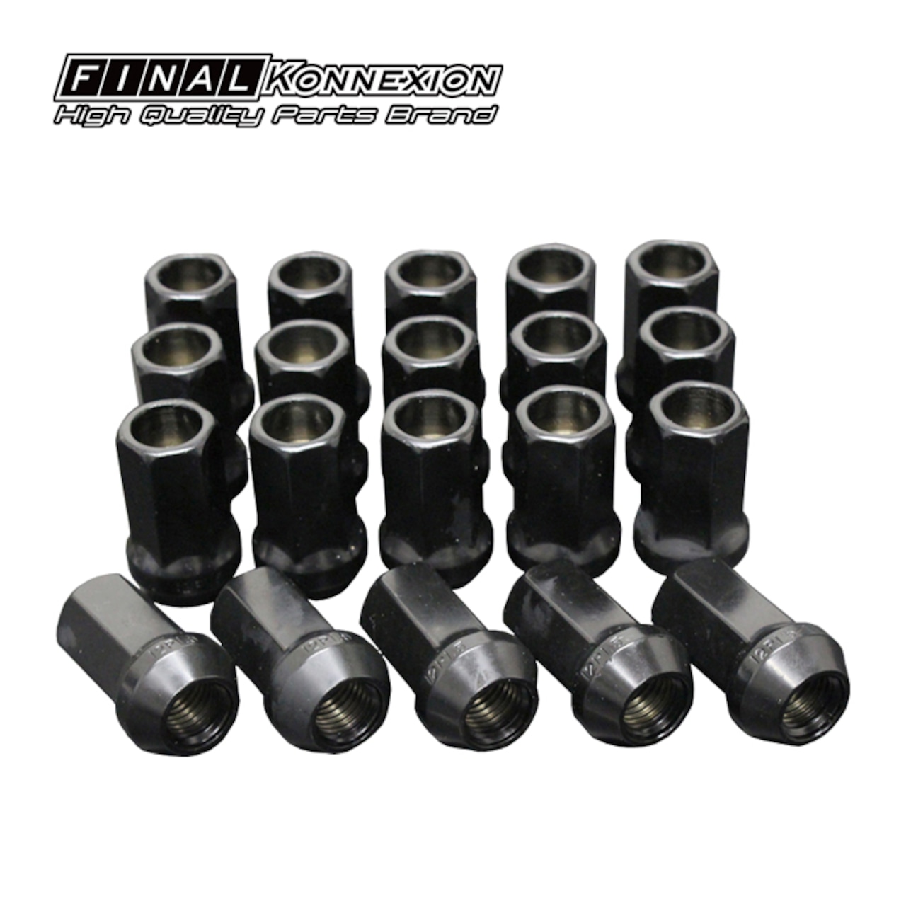【ファイナルコネクション】 レーシングナット 37mm M12×P1.25/M12×P1.5 17HEX 冷感鍛造製 貫通タイプ ブラック テーパー角60° 錆に強い 【PGFK-RCN037-V】 | PRIENT GARAGE