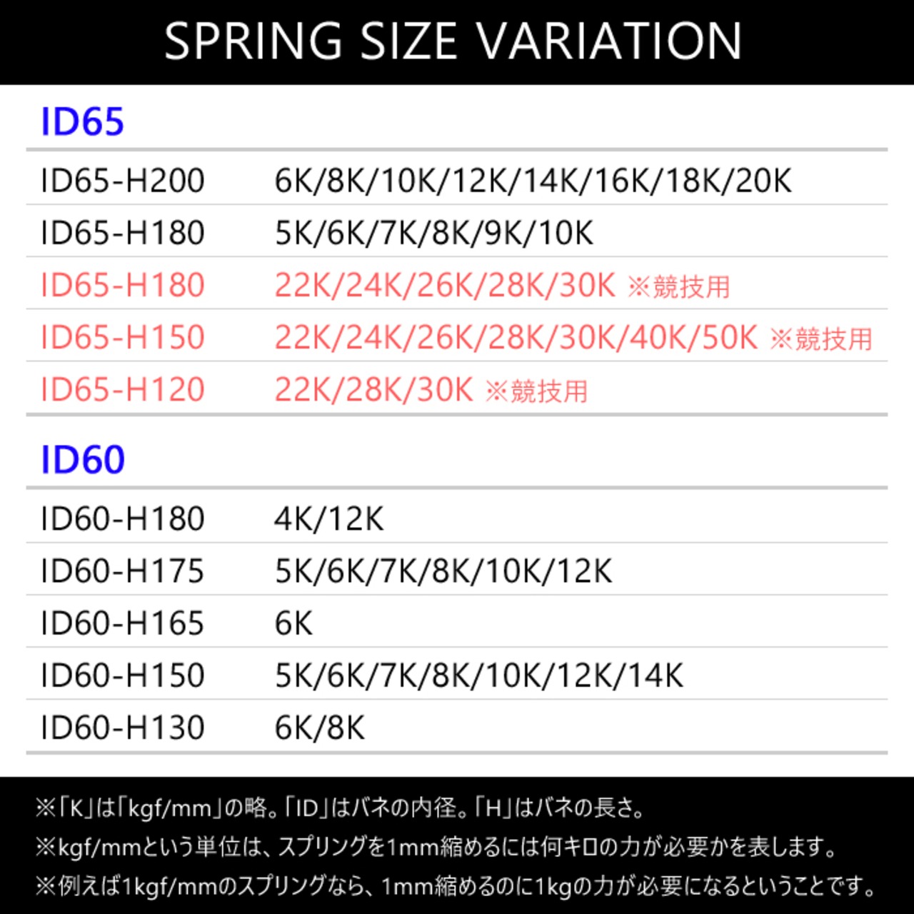 ※バネレート22〜50kgf/mmは競技用となりますのでご注意ください。