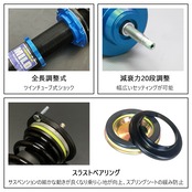 ・出荷時の車高調はアッパー各部・ナット・シートロック・ブラケットロック類は全て仮止めの状態となっております。必ず装着時に締付けを行ってください。
