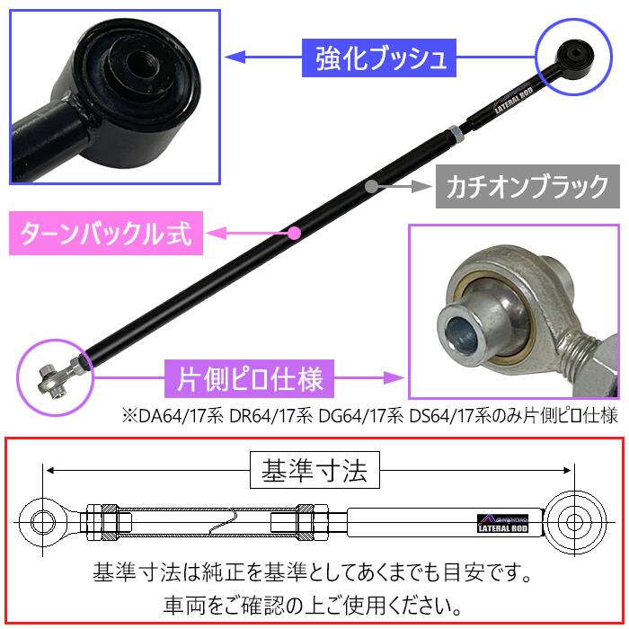 【STEALTH】 ラテラルロッド MAZDA DG64V/DG64W スクラム/スクラムワゴン専用 2WD/4WD ターンバックル調整式 片側ピロ仕様 ローダウン・リフトアップ時のリアアクスルのずれを補正 車両に装着したまま調整可能 【PGFK-FLRS4-04】 ファイナルコネクション | PRIENT GARAGE